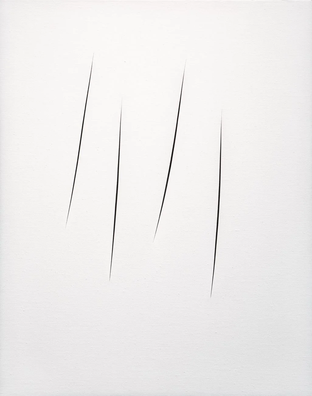 Lucio Fontana / Attese (Spatial Concept, Waiting) painting Dec 14 Written By Dahrell Williams Lucio Fontana / Attese (Spatial Concept, Waiting) 1965Water-based paint on canvas36 3/10 × 28 7/10 in92.1 × 73 cm whiteLucio Fontana Dahrell Williams